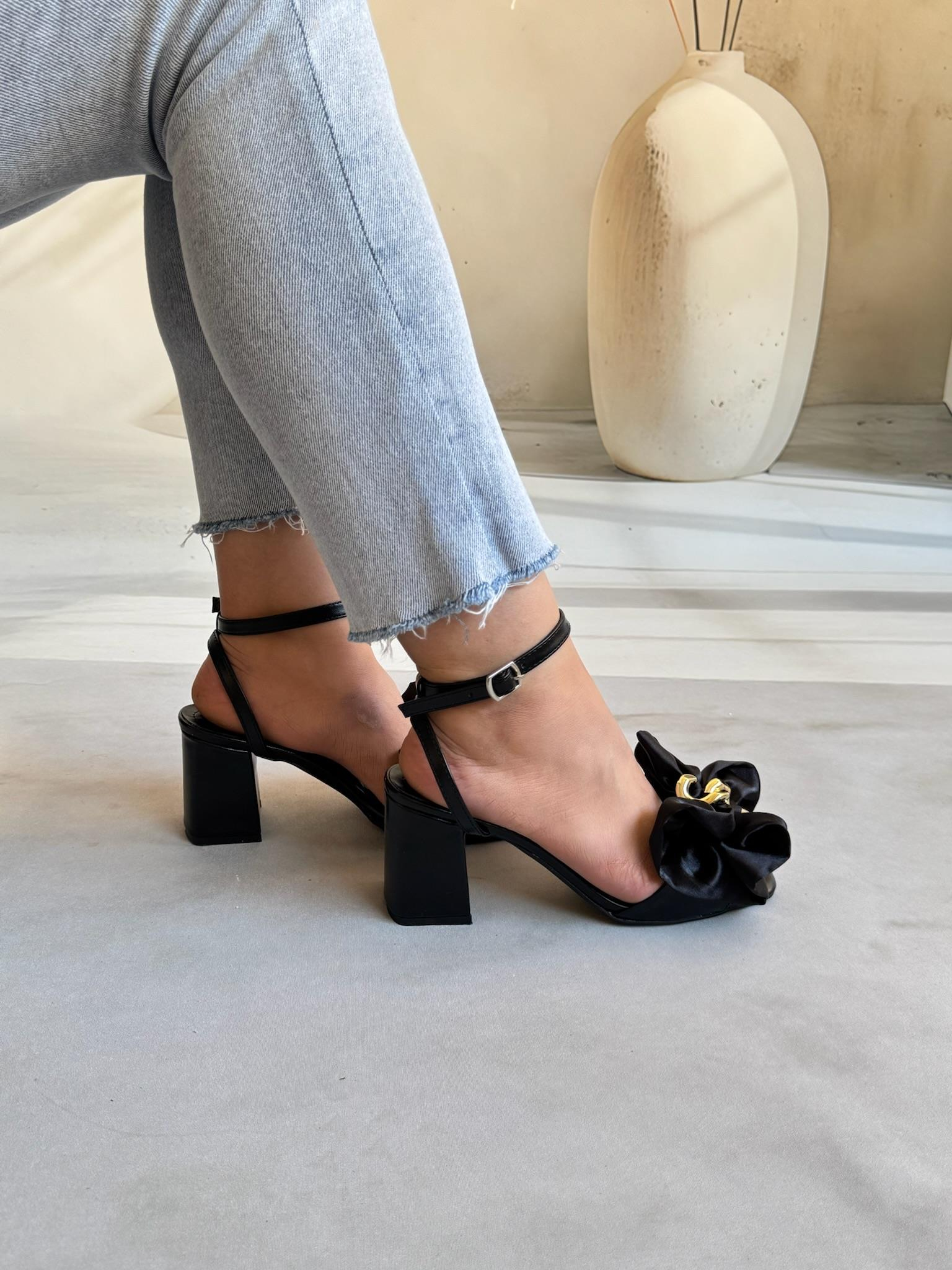 ARS fiyonk detaylı kalın topuklu siyah ayakkabı