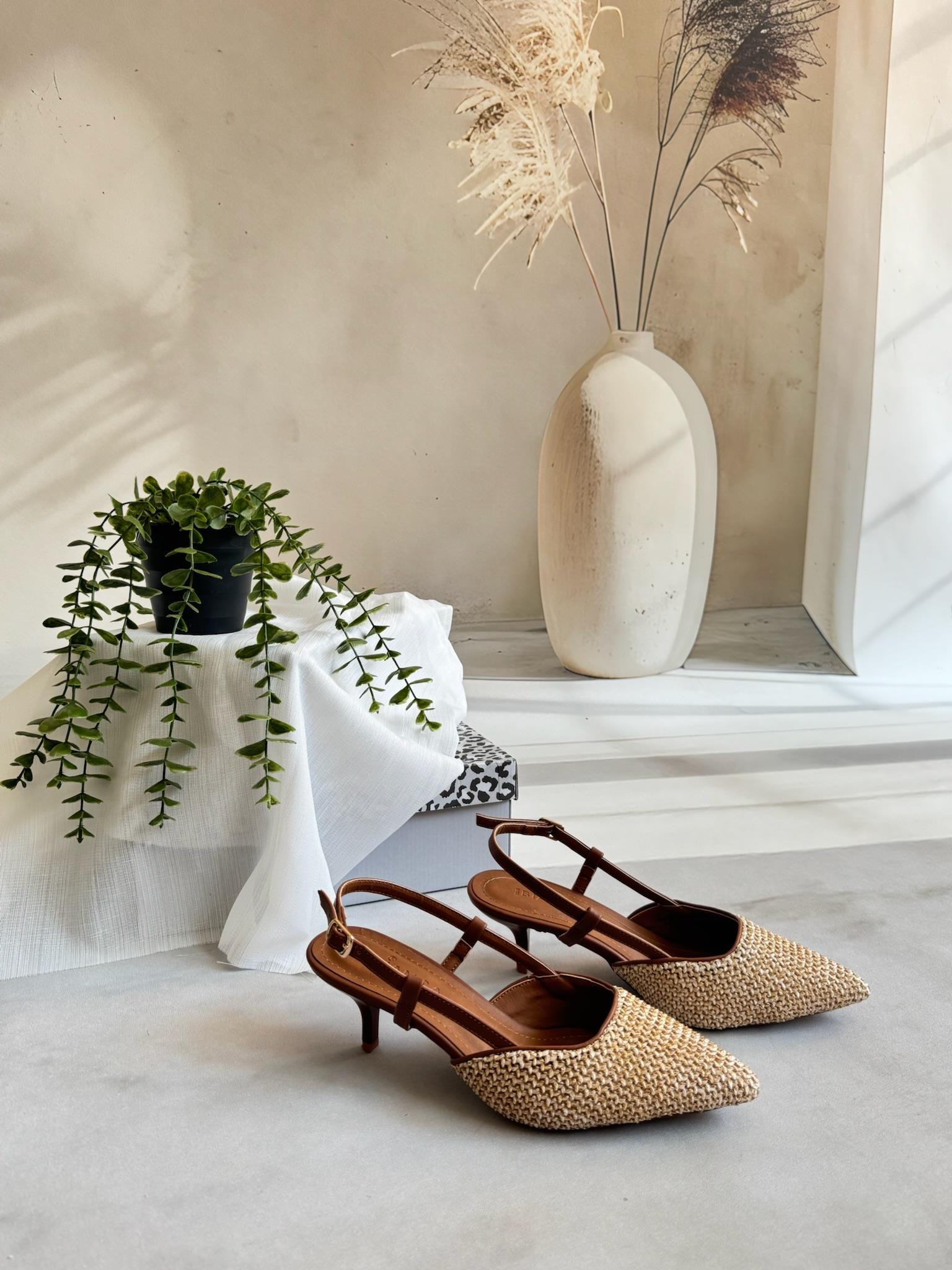 BC model kodu 0291 hasır taba rengi topuklu ayakkabı