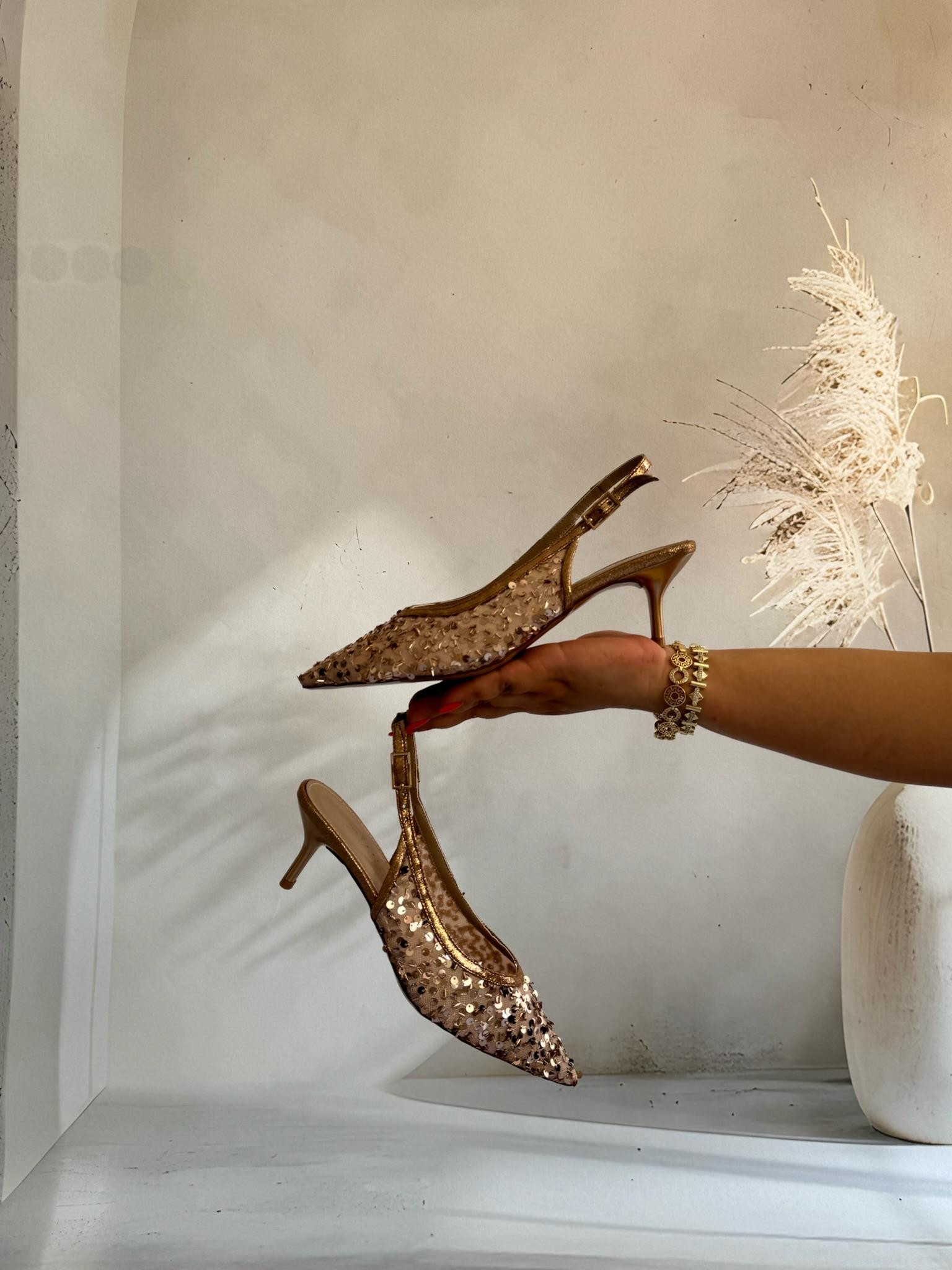 BNC model kodu 087 pullu gold topuklu ayakkabı