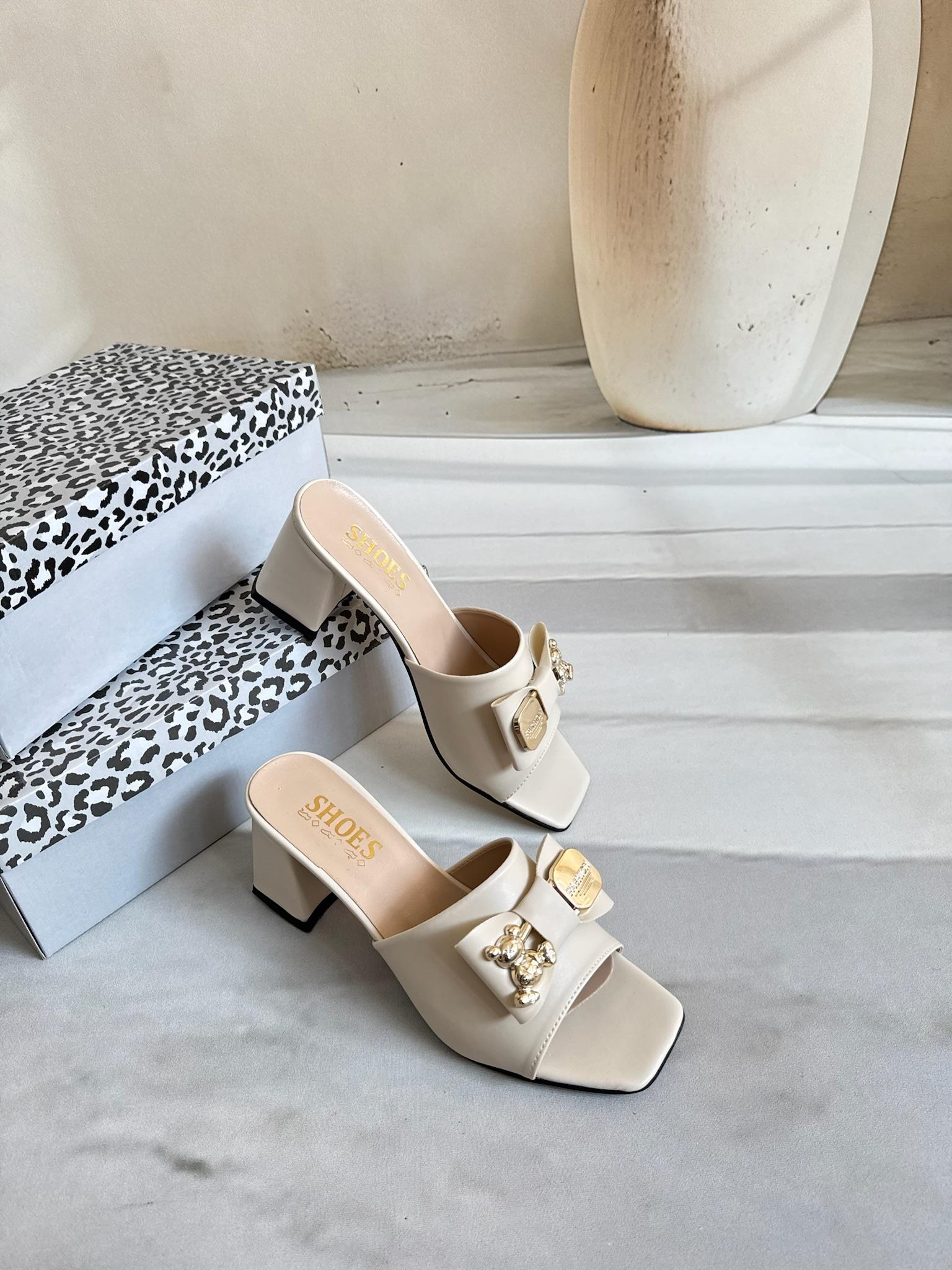 SHS model kodu 013 5 cm ayıcık tokalı topuklu bej terlik